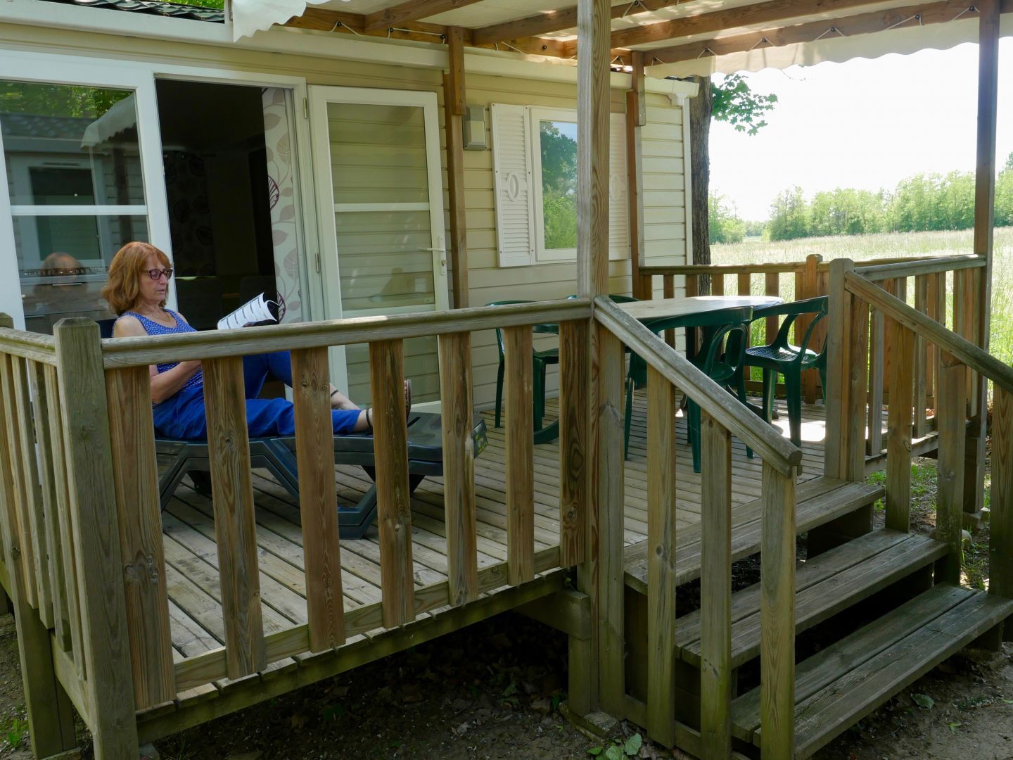 - A l'extérieur : une terrasse en bois couverte, 1 salon de jardin et 2 transats.